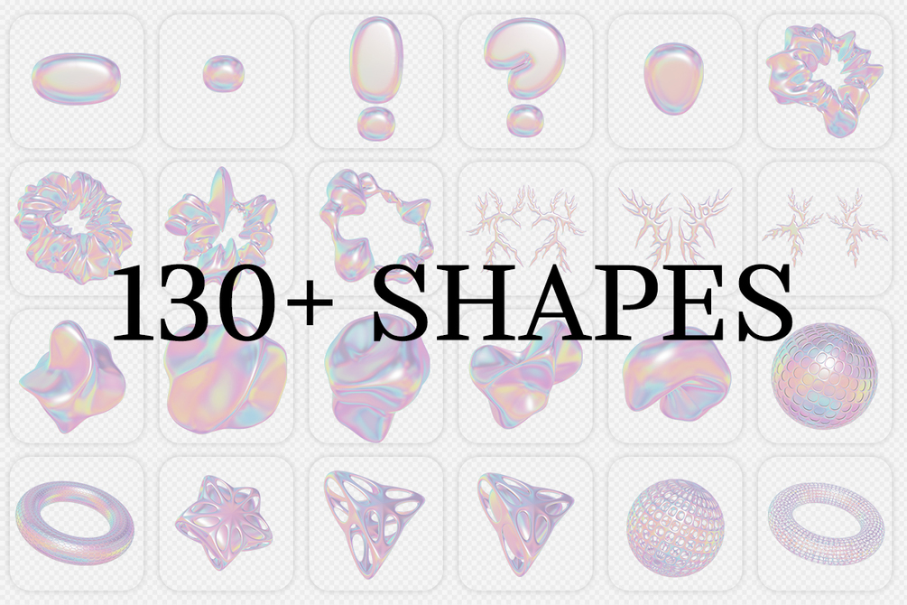Infinite Design Possibilities: With over 130 stunning 3D shapes and objects, the possibilities are endless! Whether you're creating posters, album covers, or designing a captivating UI/UX experience, these assets will be your secret weapon. A Splash of Color: Dive into a vibrant world of colors and gradients! Our 3D shapes come in a mesmerizing spectrum, adding depth and dimension to your designs. Create eye-catching visuals that pop off the screen or page.