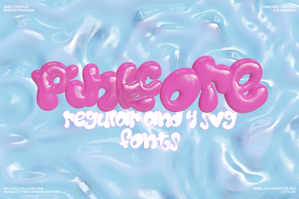 Inflated Styles: Embrace the playfulness of Pinkcore's inflated styles that add a touch of fun and extravagance to your projects. Whether you're designing invitations, posters, or social media graphics, these stylishly bold letters will make your text pop like never before!