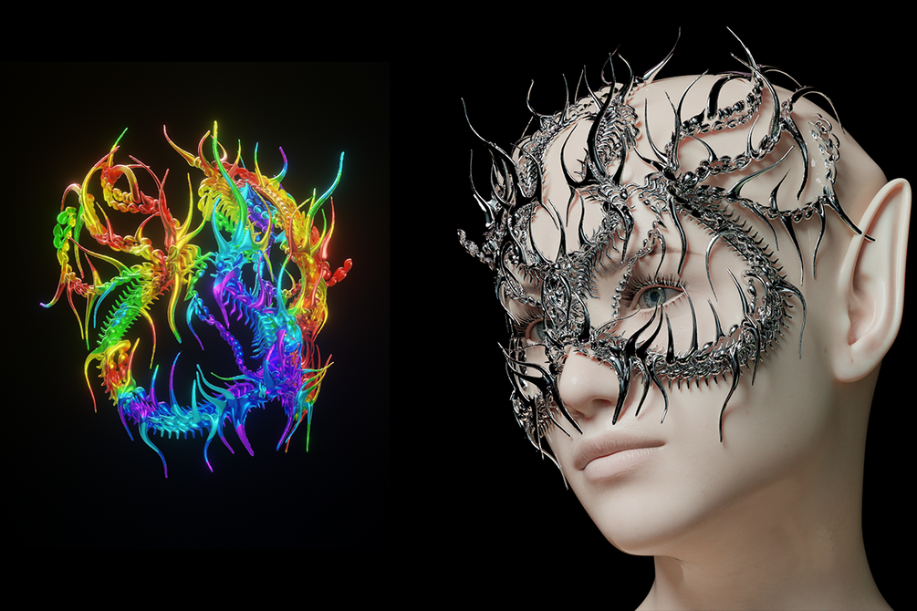 Chrome Abstract 3D mask was sculpted by my hands for your amazing artworks! Mask follow your pose in Daz 3D, so you don't need set up it to the face manually.