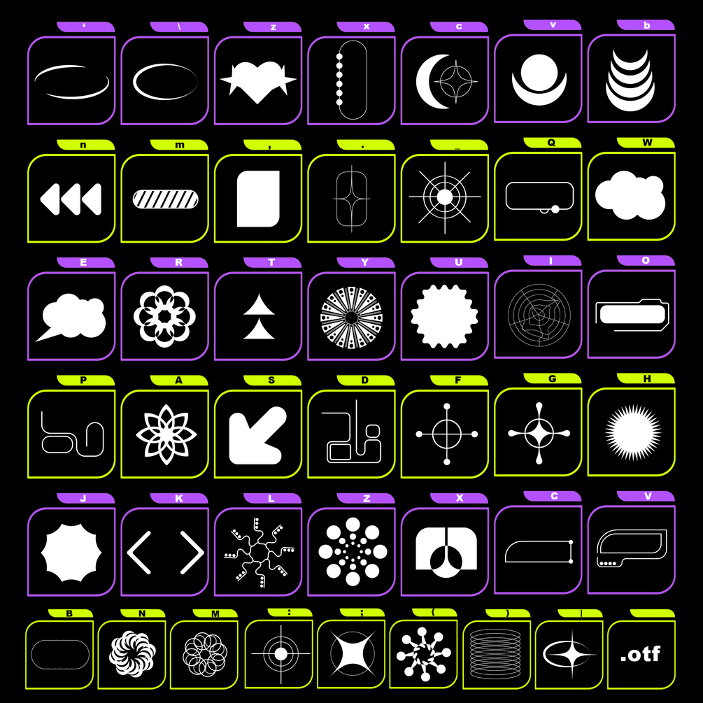 SAINTSYMBOLS - the original idea was to save time when I was working in Blender 3D and use a ready-made font instead of an svg shapes. But later I liked using it so much in graphics and posters that I decided to supplement it and make a full-fledged font!