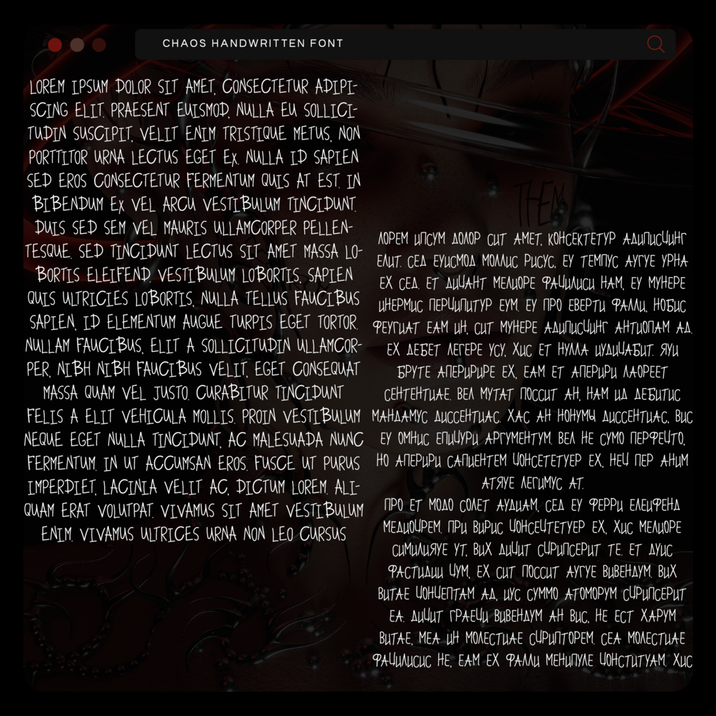 One of the most striking features of Mayhem is its handwritten look. Each character has a natural, flowing feel that gives the font a truly organic feel. This handwritten quality is complemented by the font's sharp, angular edges, which give it a modern, contemporary edge. The combination of these two elements results in a font that is both sophisticated and bold, making it perfect for a range of designs projects.