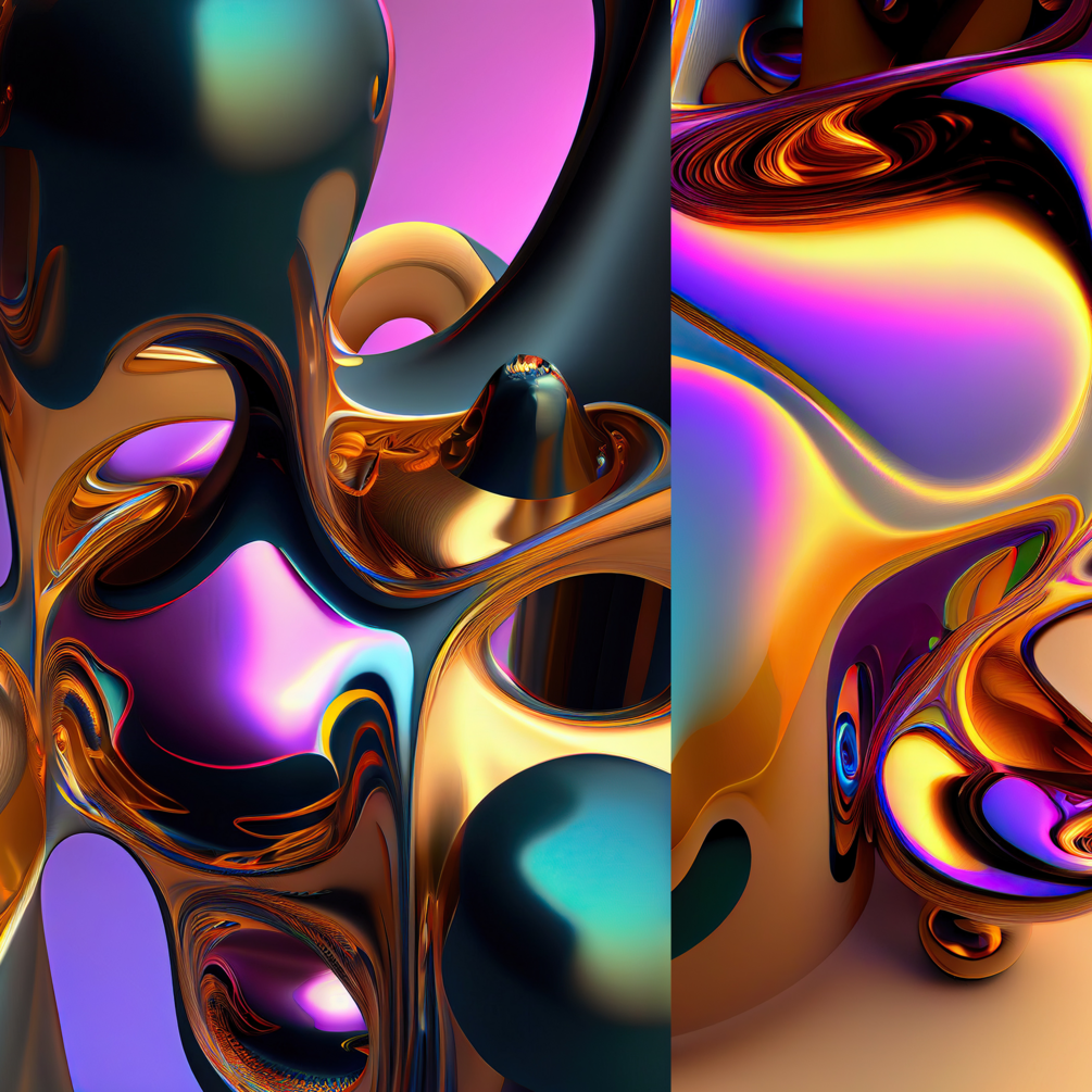 Abstract liquid chrome shapes created via Midjourney prompts.
