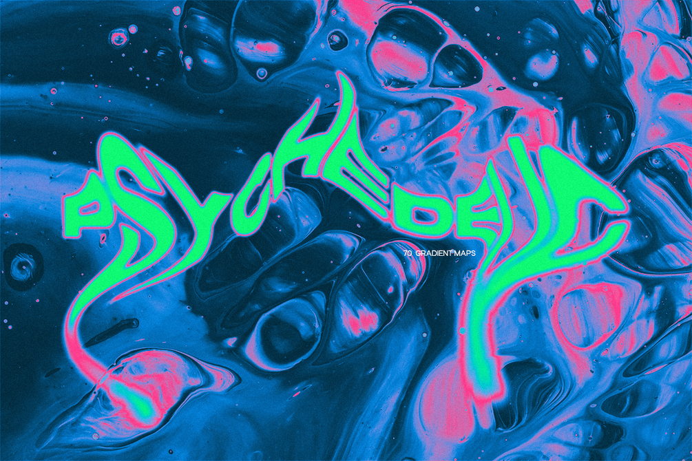 Introducing the PSYCHEDELIC gradient maps bundle – a collection of 70 gradients for Photoshop that will take your graphics and digital art to the next level. With so many options, you can create endless possibilities for your artwork, posters, social media marketing, and more!