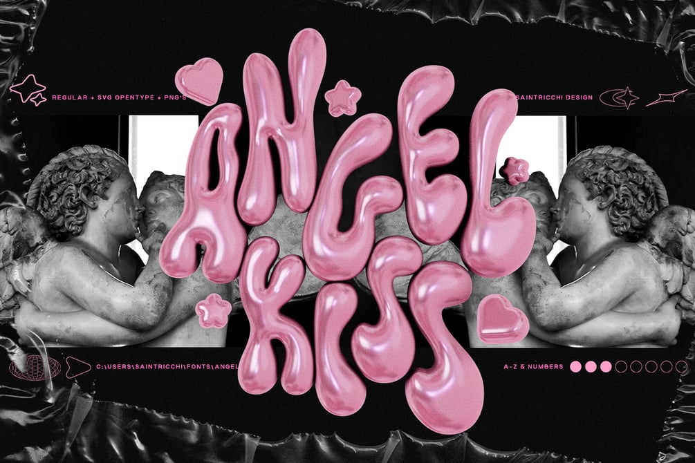 Unleash the magic of typography with our latest creation: Angel Kiss, a liquid display font that transcends boundaries. This font is more than just letters; it's an art form in every stroke, curated to bring your designs to life.