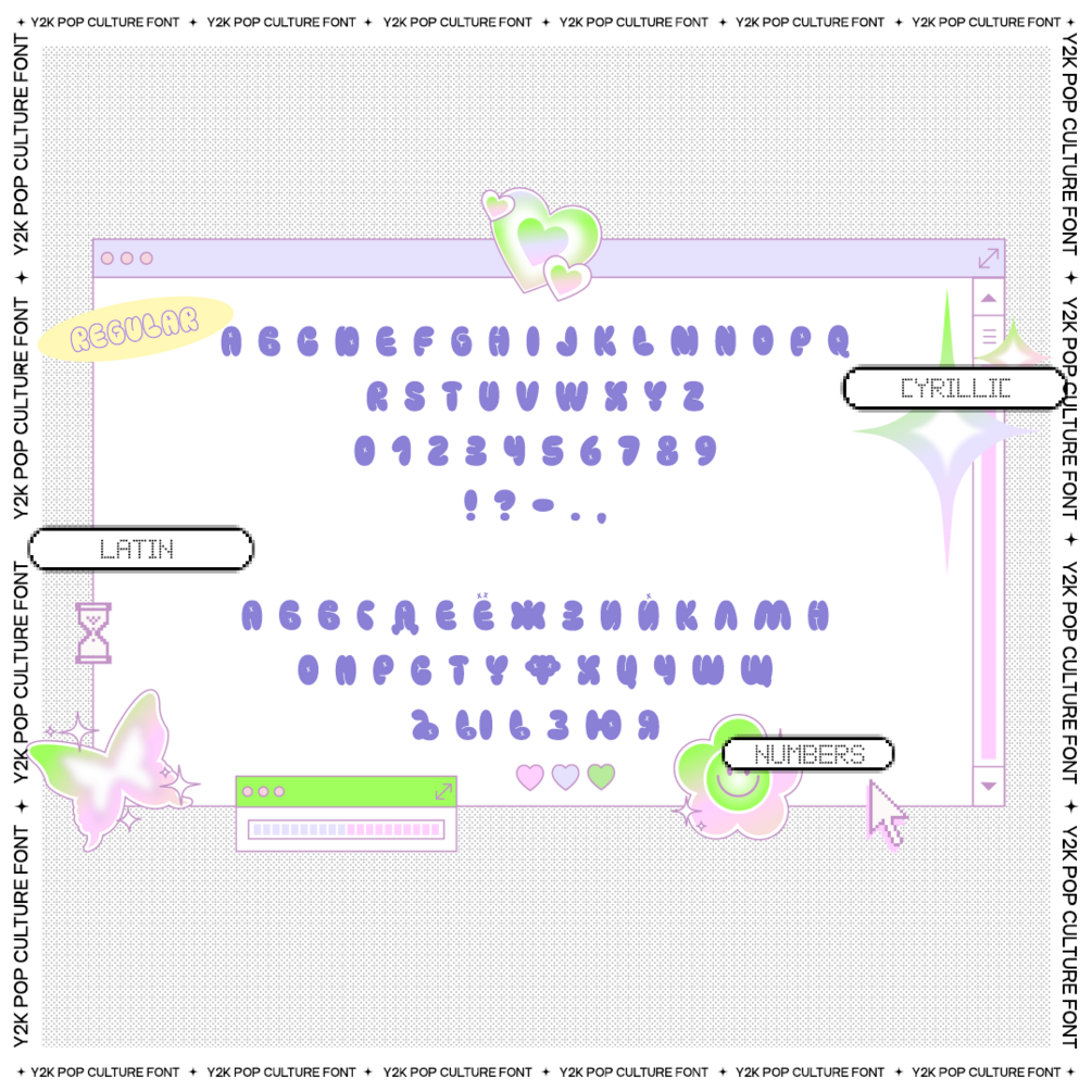 Introducing PixelPop, the ultimate font for all your Y2K design needs! With its pixelated aesthetic and bubble-inspired curves, PixelPop captures the retro-futuristic vibe of the turn of the millennium. Perfect for logos, headlines, or any other design element that needs a touch of Y2K flair, PixelPop is a versatile and eye-catching font that will make your work stand out.