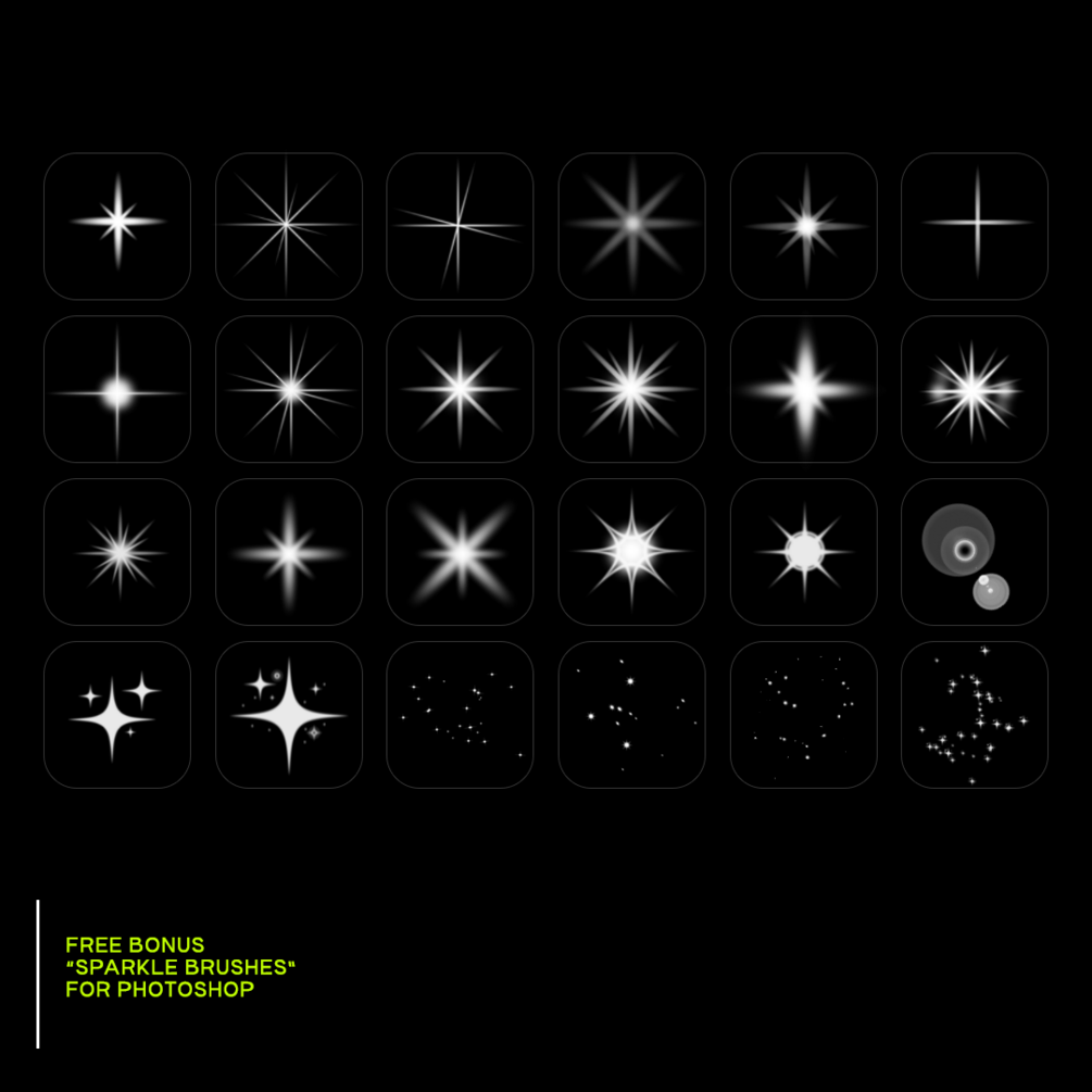 This pack also includes a brush set of sparkles.