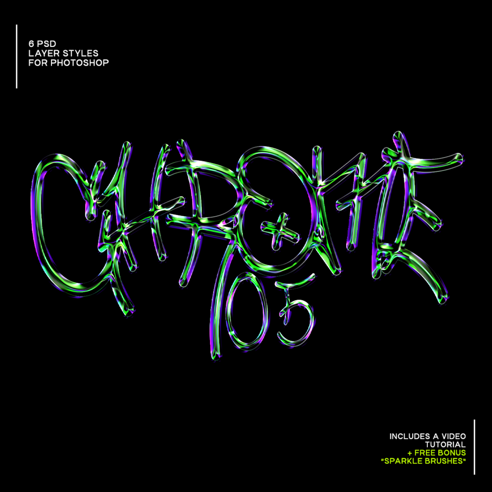Chrome Text Effect 05 - is a one-step effect for your graphics, logos and text. Add some unique chrome&shiny style just in one step through smart-object.