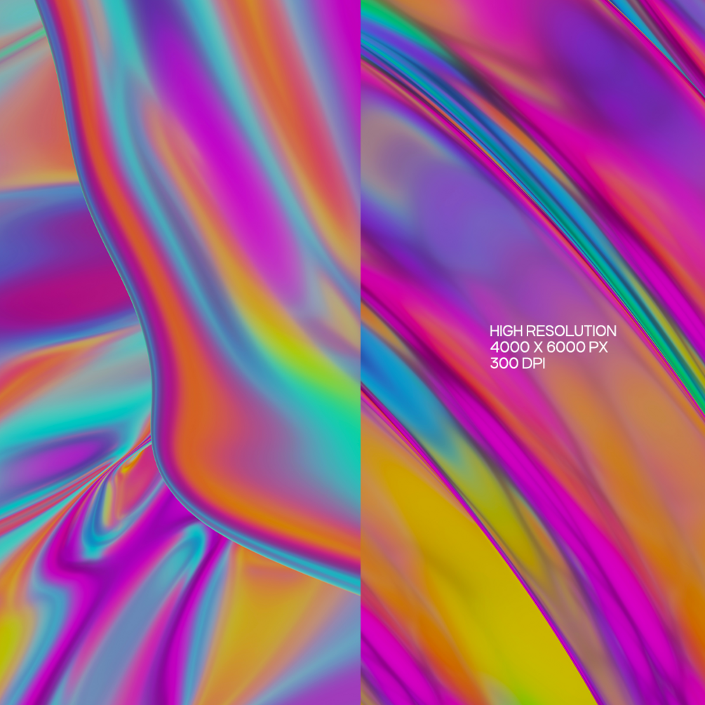 Introducing Trippy - Liquid Textures, the latest addition to your design toolkit! With 30 high-resolution textures, this product is perfect for adding a pop of color and dimension to your creative projects. Each texture features a mesmerizing holographic effect that will make your designs stand out from the crowd.